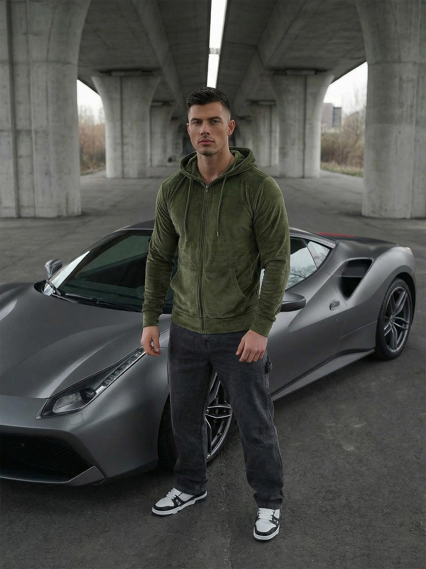 Το ανδρικό χακί βελούδινο φούτερ με κουκούλα OZONEE JS/8B1168/29Z είναι ένας συνδυασμός άνεσης και μοντέρνου σχεδιασμού. Κατασκευασμένη από την υψηλότερη ποιότητα υλικόów, παρέχει άνεση όλη την ημέρα. Κλείνει με φερμουάρ και διαθέτει κουκούλα που προσθέτει μια μοναδική πινελιά. Το κάτω μέρος και τα μανίκια που τελειώνουν με φερμουάρ τονίζουν το σπορ στυλ του.